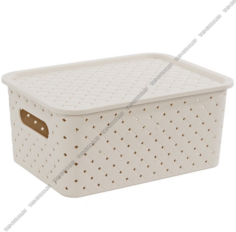 Корзина Корзина "Ремешки" с крышкой,сливочный 7,5л (35х24 h10см) (12)