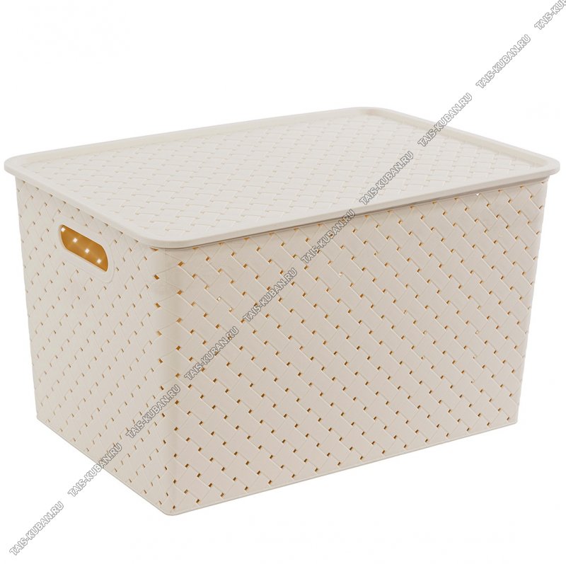 Корзина "Ремешки" с крышкой,сливочный 14л,прямоугольная (35х24 h20см) вырубные ручки (12)