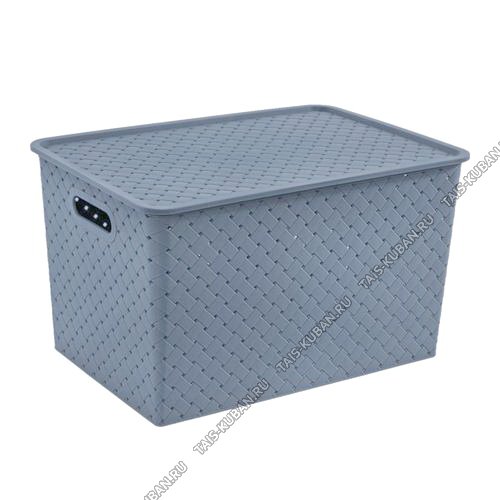 Корзина "Ремешки" с крышкой,графит 14л (35х24 h20см) (12)