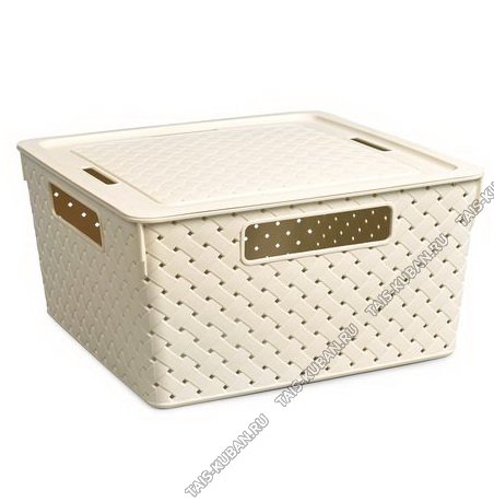 Корзина Корзина "Ремешки" с крышкой,сливочный 7,5л (35х24 h10см) (12)