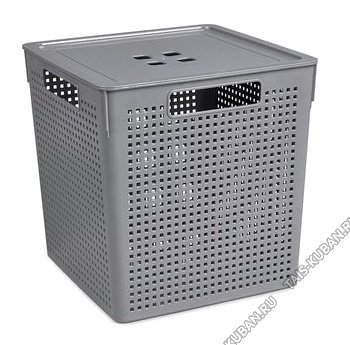 Корзинка "Лофт" графит, с крышк 23л,квадр.(29х29 h30см) 4 выруб.руч.(9)