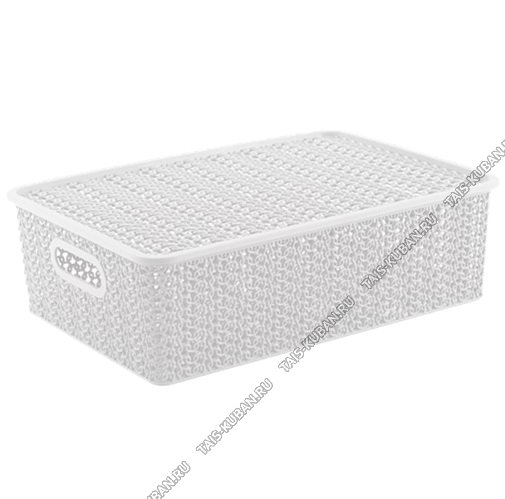 Корзина "Вязь" бел, с крышк 7,5л,прям.(35х24 h10см) выруб.руч.(11)