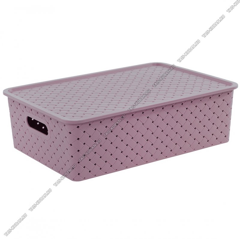Корзина "Ремешки" с крышкой,сирень 7,5л (35х24 h10см) (12)