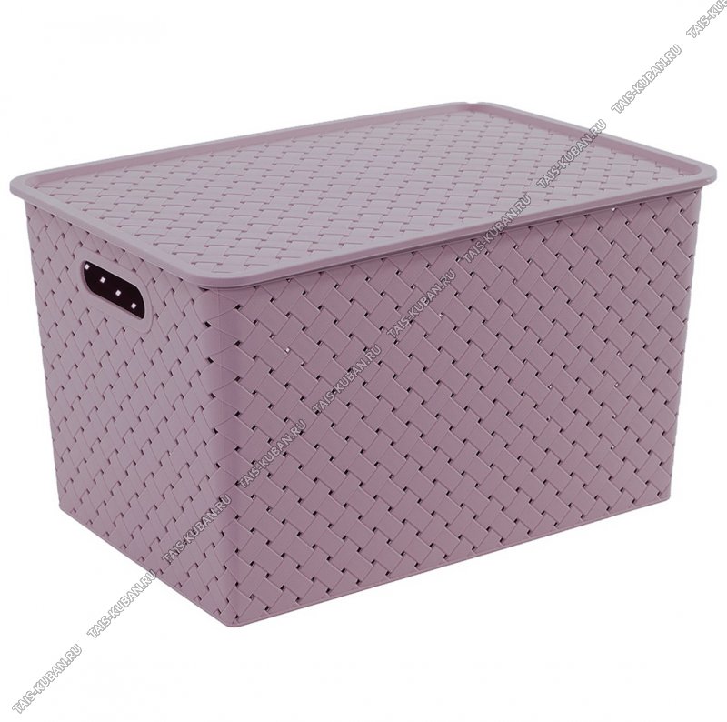 Корзина "Ремешки" с крышкой,сирень 14л,прямоугольная (35х24 h20см) вырубные ручки (12)