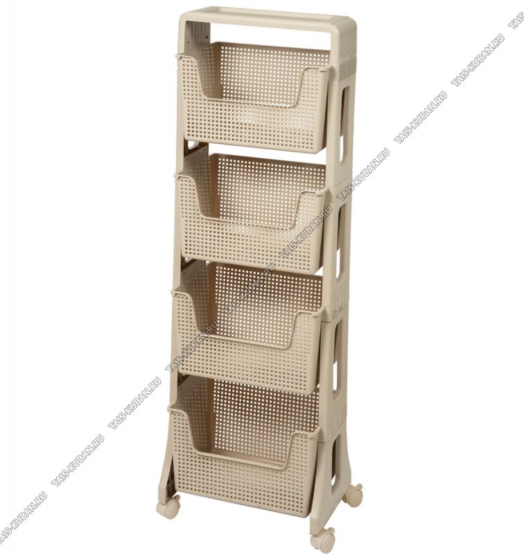 Корзинка "Лофт" латте, 4-х ярус,этажерка на стойке с колесик (39,5х26 h123см) (12)