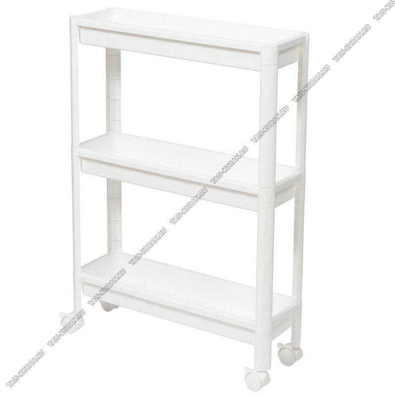 Этажерка "Vikea" 3-х ярус (53х17,5 h75,5см) на колес,узкая,белый (5)