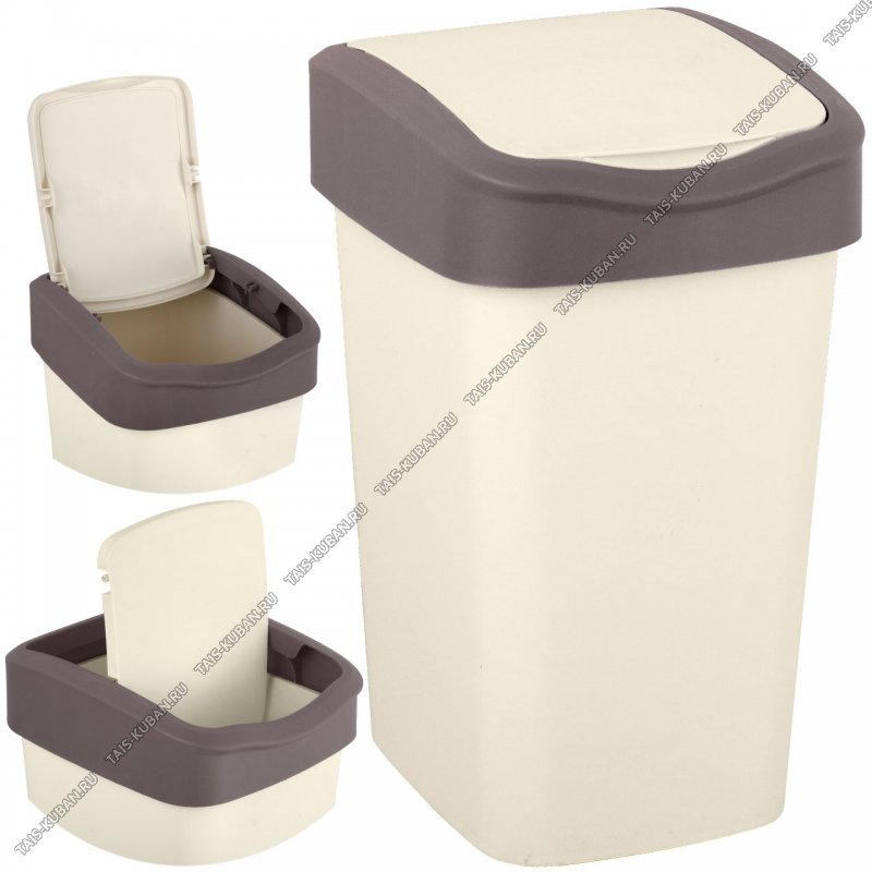 Ведро д/мусора 10л с откид.крыш (вверх/низ) сл.кость/шоколад,прям.(23,5х19,5 h34см) (8)