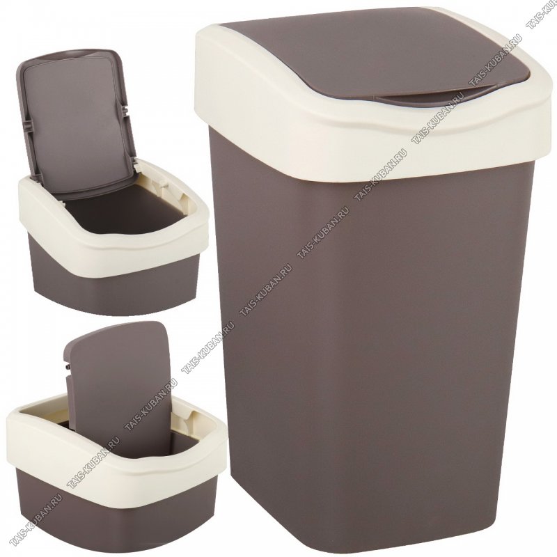 Ведро д/мусора 10л с откид.крыш (вверх/низ) шоколад/сл.кость,прям.(23,5х19,5 h34см) (8)