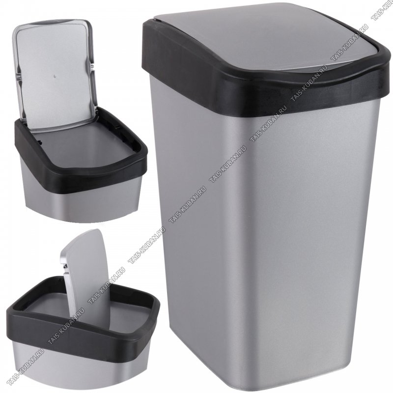 Ведро д/мусора 20л с откид.крыш (вверх/низ) сер.металлик/черн,прям.(30х23 h43см) (8)