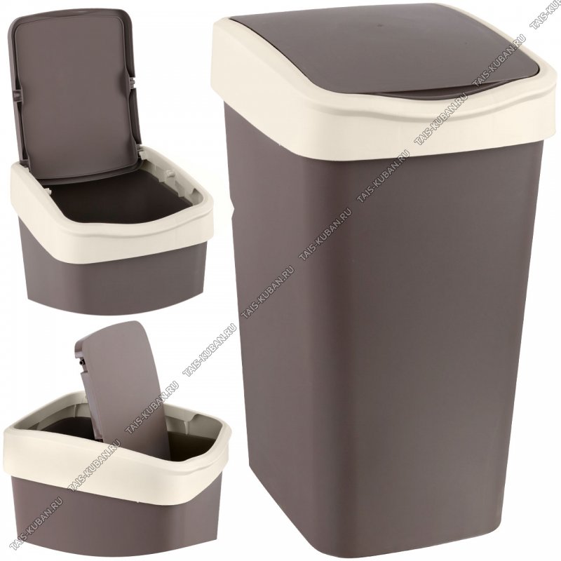 Ведро д/мусора, крышк "прямая" кач-ся 20л, 2 положен.крыш-вверх и кач-ся,д/крупн.и мелк.мусора, шоколад/сл.кость,прям (30х23 h43см) фиксат.пакета (8)