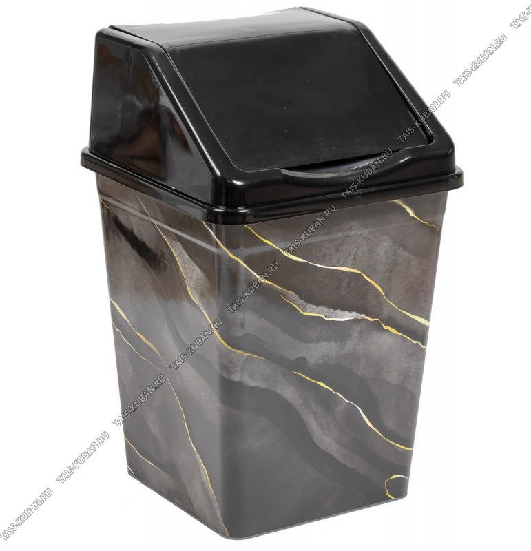 Ведро для мусора, крышка "трапеция" качающаяся 10л "Мрамор" черный, квадрат (22,5х22,5 h35см) (10)