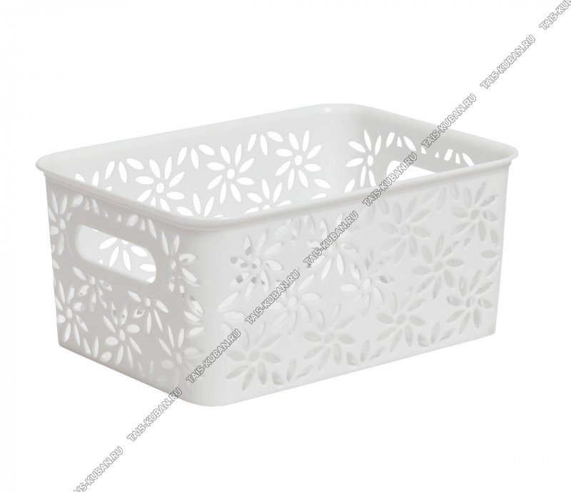 Корзина "Ромашки" белый, б/крышки 3,0л,прям.(23х17 h10см) выруб.руч.(18)