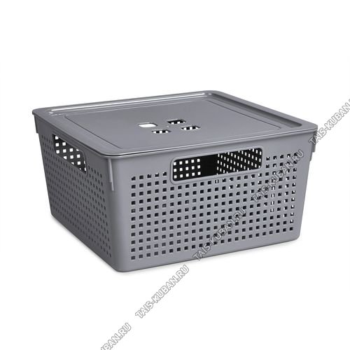 Корзинка "Лофт" графит, с крышк 11л,квадр.(29х29 h15см) 4 выруб.руч.(17)