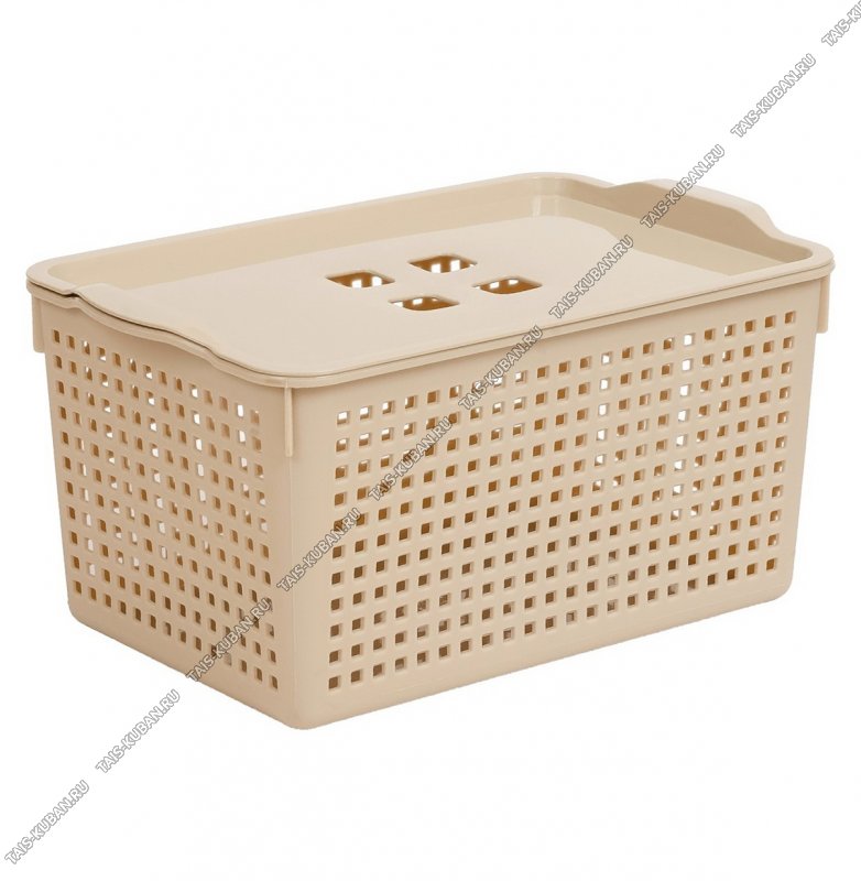 Корзинка "Лофт" латте, с крышк 5,3л,прям. с руч.(11)