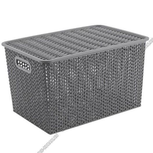 Корзина "Вязь" серый, с крышк 14л,прям.(35х24 h20см) выруб.руч.(12)