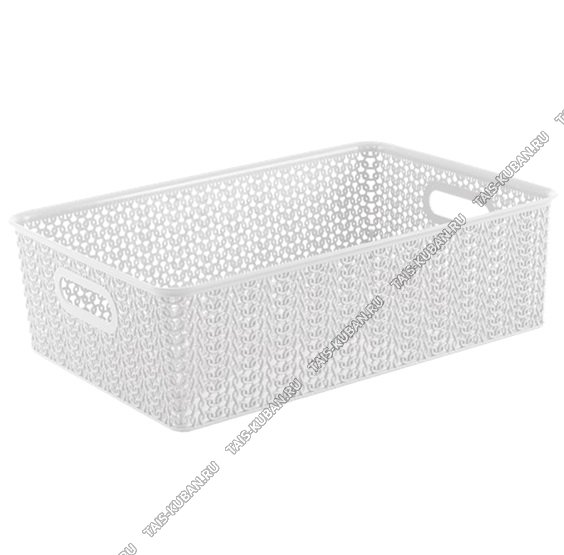 Корзина "Вязь" белый, б/крышк 7,5л,прям.(35х24 h10см) выруб.руч.(11)