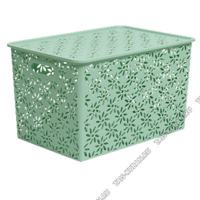 Корзина Корзина "Ромашки" пудр.зеленый, с крышк 3,0л (23х17 h10см) (16)