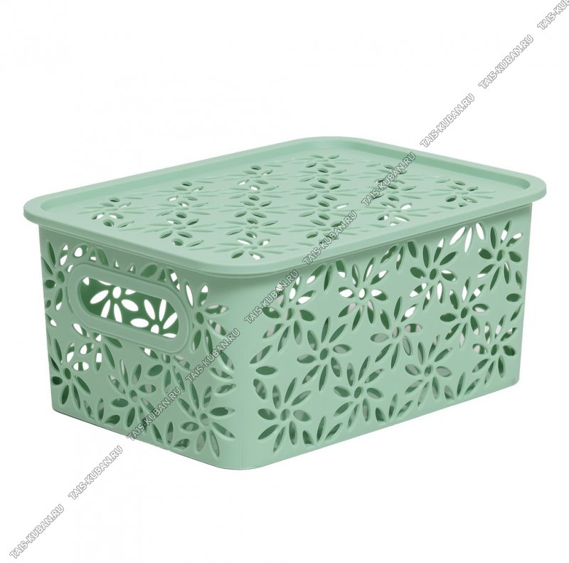 Корзина "Ромашки" пудр.зелен, с крышк 3,0л,прям.(23х17 h10см) выруб.руч.(16)