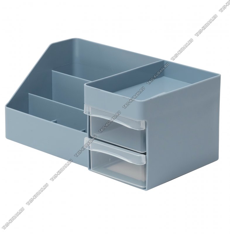 Органайзер д/мелочей 2 выдвижн.ящика, +6секций (26х16 h11,5см) серо-син/прозр (8)