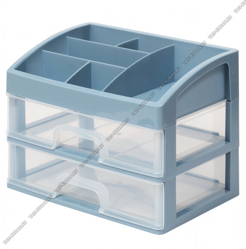 Органайзер д/мелочей 2 выдвижн.ящика, +6 секций (26х18 h20см) серо-син/прозр(4)