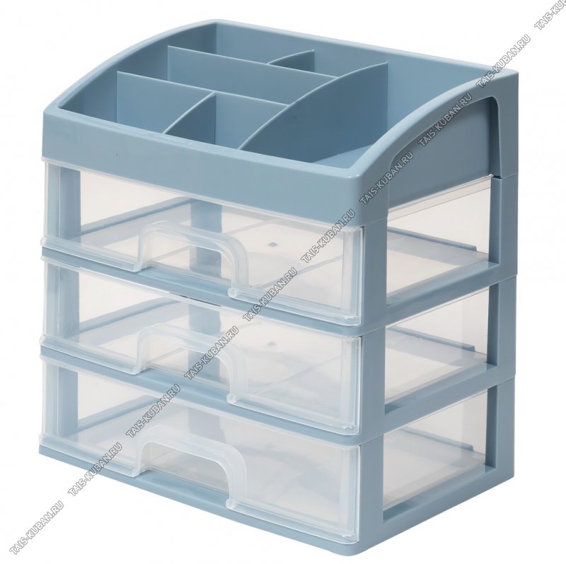 Органайзер д/мелочей 3 выдвижн.ящика, +6 секций (26х18 h26,5см) серо-син/прозр (4)
