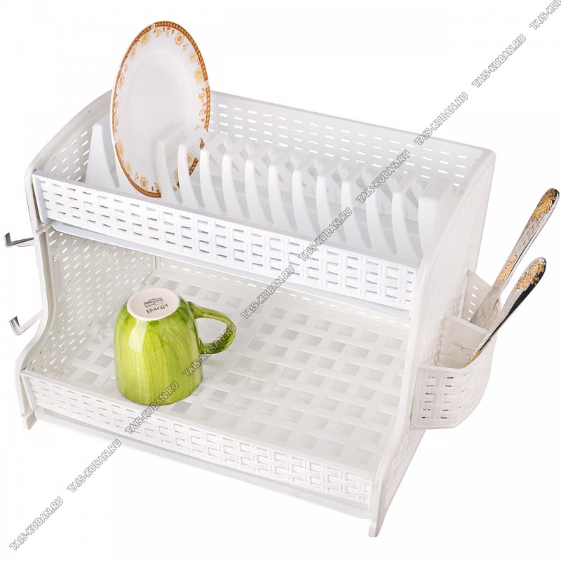 Сушилка д/посуды "Ротанг" белый, на 14 тарелок 2-х яр.+2отд.д/ст.приб+2кр.д/круж,стак.(41х28 h32см) с поддон (6)