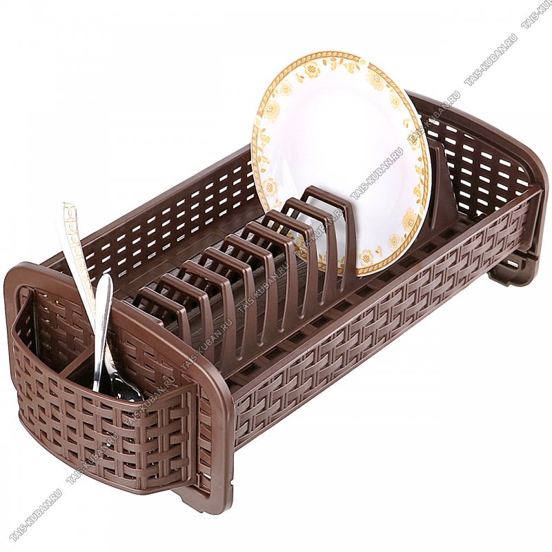 Сушилка д/посуды "Ротанг" коричн, на 14 тарелок+2отд.д/ст.приб.(41х24 h14см) с поддон (8)