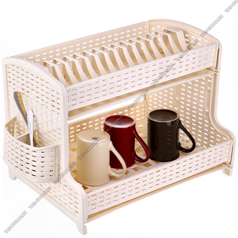 Сушилка д/посуды "Ротанг" сливочн, на 14 тарелок 2-х яр.+2отд.д/ст.приб+2кр.д/круж,стак.(41х28 h32см) с поддон (6)