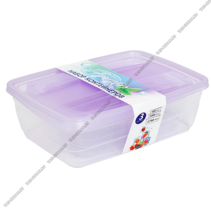 Контейнер "Fresco"н-р 3шт 0,5, 1, 1,75л крыш.лаванда, прям.(22,5х16,5 h7см) (10)
