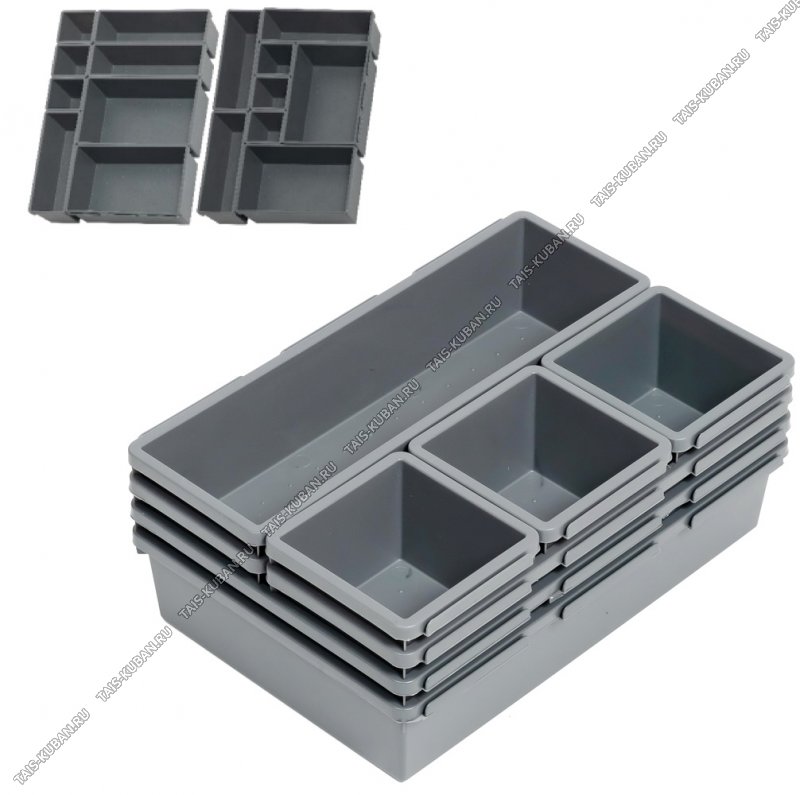Лоток-вклад д/хранен 8-ми секц. (сборн) "Комбо3" графит (2шт*24х16см/ 3шт*24х8см/ 3шт*8х8см h5см) крепятся друг к другу (12)