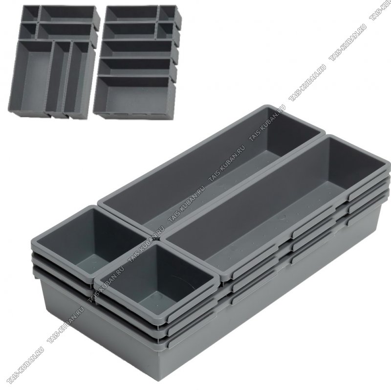 Лоток-вклад д/хранен 7-ми секц (сборн) "Комбо4" графит (1шт*32х16/ 2шт*32х8см/ 2шт*24х8см/ 2шт*8х8см h5см) крепятся друг к другу (12)
