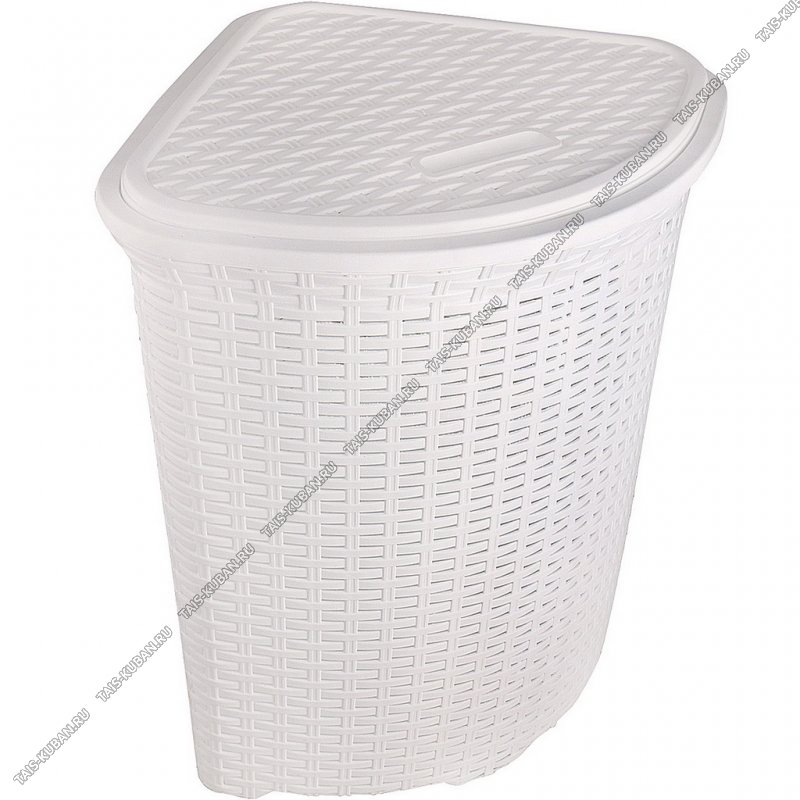 Корзина д/белья 60л "Ротанг" бел,с крышк, угловая (41х51 h58см) (8)