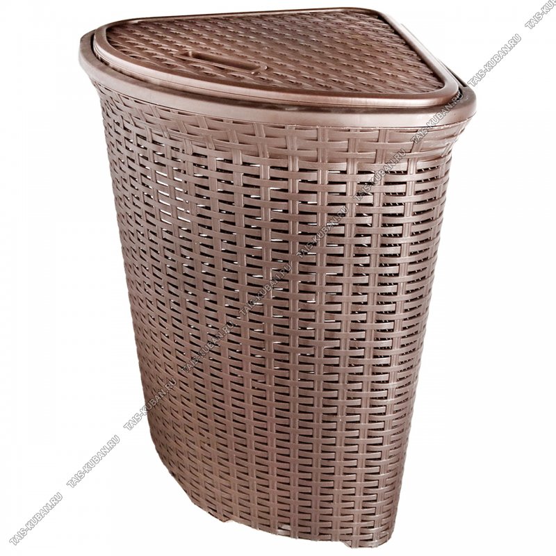 Корзина д/белья 60л "Ротанг" коричн,с крышк, угловая (41х51 h58см) (8)