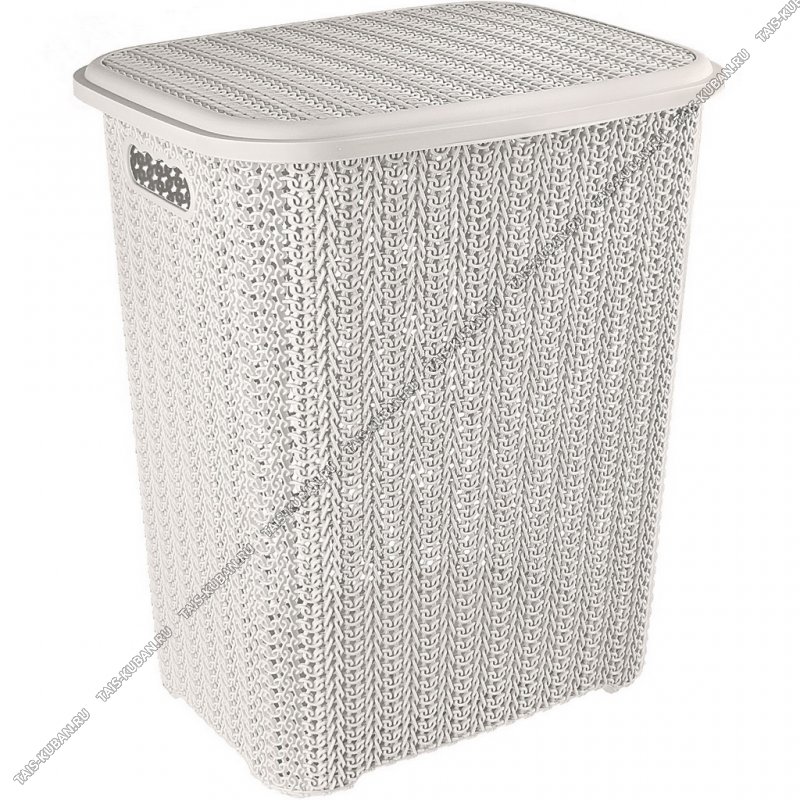 Корзина д/белья 60л "Вязь" бел,с крышк, прям (44х35 h56см) (8)
