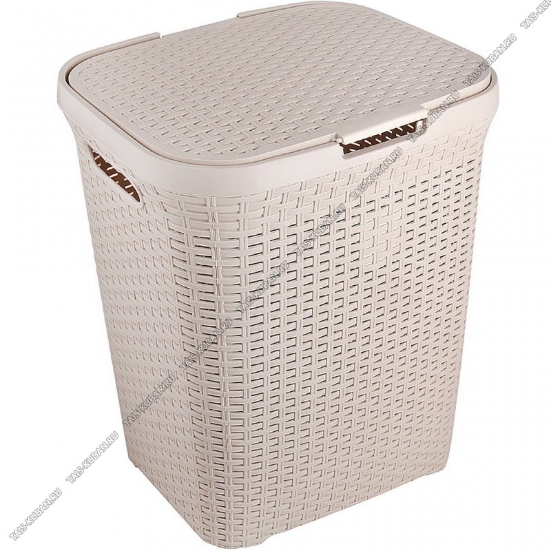 Корзина д/белья 60л Корзина д/белья 60л "Ротанг" сливочн,с крышк, прям (44х35 h56см) (8)