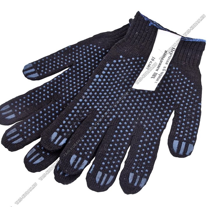 Перчатки ХБ 10класс 4 нити рабочие,с ПВХ точк,син (10/200)