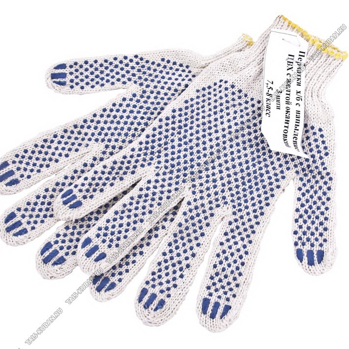Перчатки ХБ 8класс 4 нити рабочие,с ПВХ точк,бел (10/200)