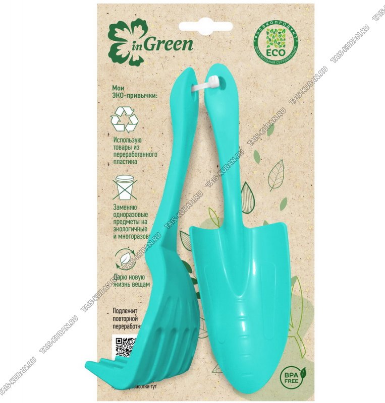 Набор для садовых растений 2пр.(совок посадочный+грабельки) L23см голубой жасимн (30)