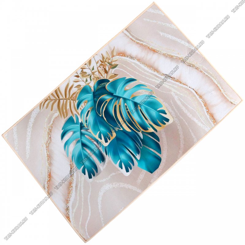 Коврик (50х80см) "Grayli/Изумрудная монстера" на бежев,"вельвет" матов,пвх основа