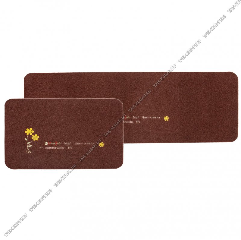 Коврик н-р 2шт (40х120+40x60см) "Велюр/Цветок" коричнев, вышит.рис,ворс h6мм,тпр основа (10)