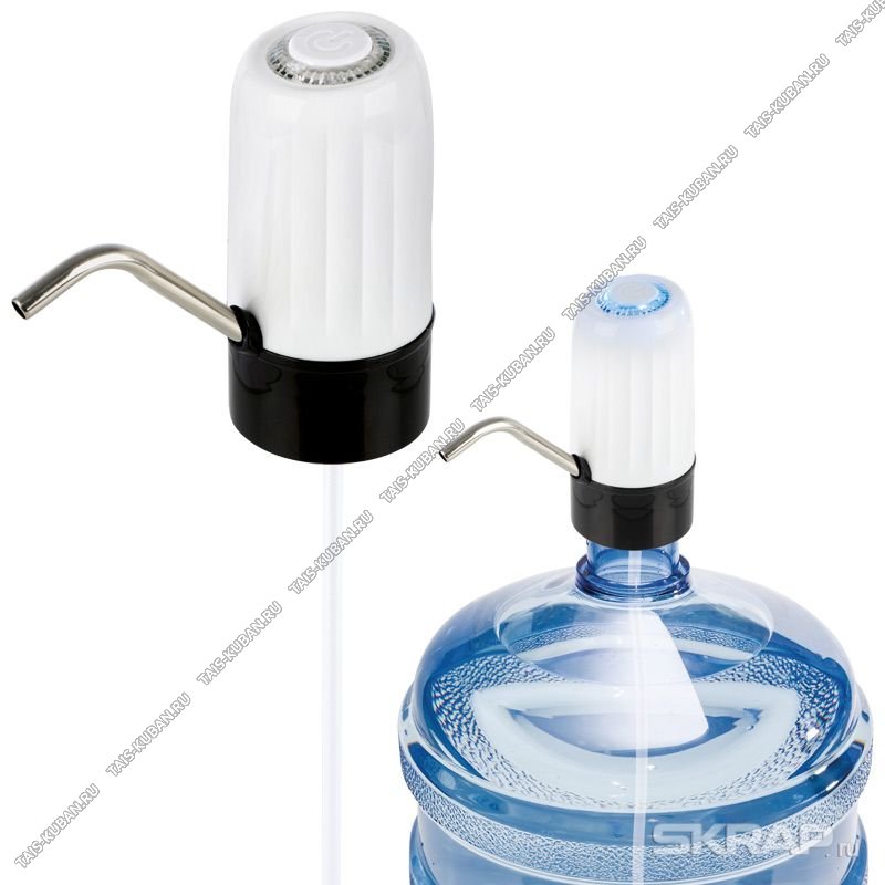 Помпа (аккум.800mAh) на бутыль 19л,метал.носик,подсвет,забор.трубка L50см,USB кабель (в ком-те),белый (60)