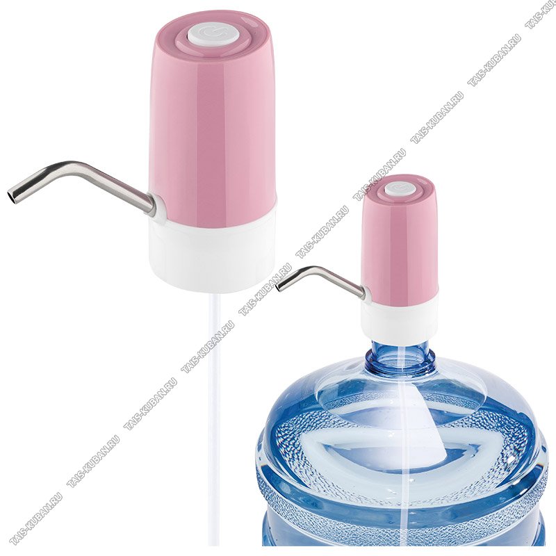 Помпа (аккумулятор 800mAh) на бутыль 19л, металлический носик, трубка для забора воды L50см, USB кабель (в комплекте), цвет розовый, Energy (60)