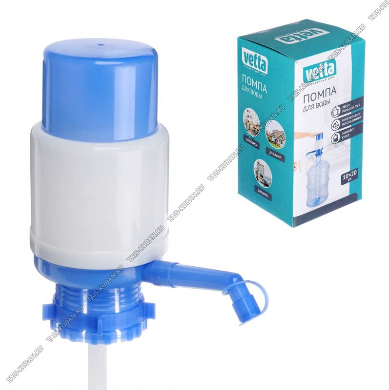 Помпа (механическая) д/бутылки 19л 20х10см, забор.труба 45см, носик с заглушкой, Vetta