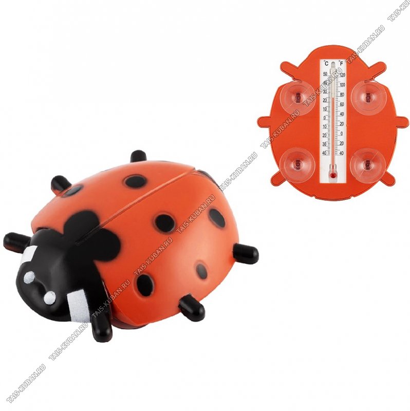 Термометр уличный для окон, на липучке 4шт (L16х15см) "Божья коровка" стекло,пластмасса,ПВХ,керосин, упаковка пакет (72)