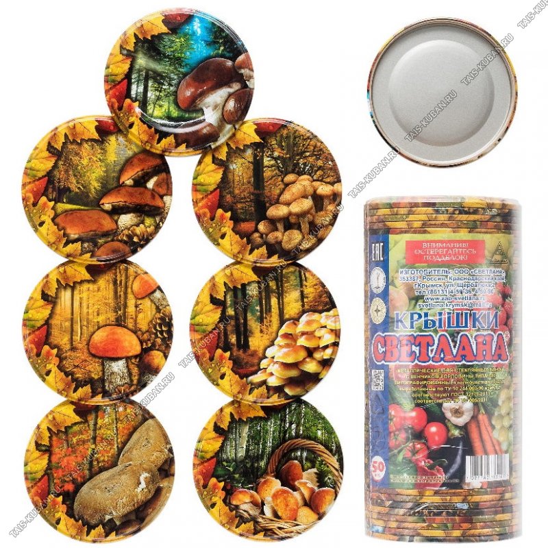 СВЕТЛАНА Крышка д/консерв.винтовая RTS литограф. СВЕТЛАНА Крышка д/консерв.винтовая RTS литограф. "ГРИБЫ" (ц.за 20шт) (36)
