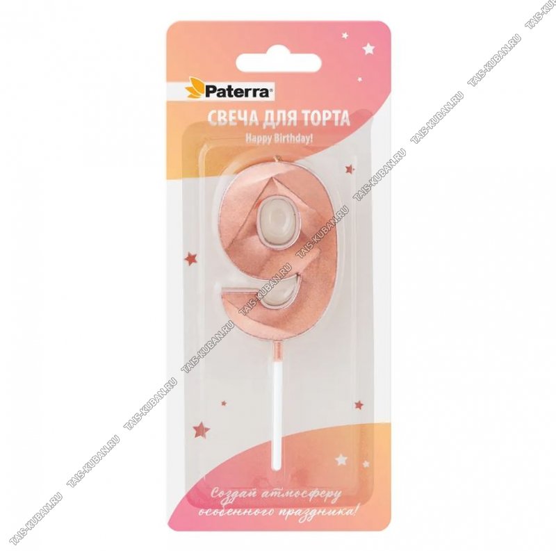 Свеча д/торта розовое золото "9" h5,8см (24)