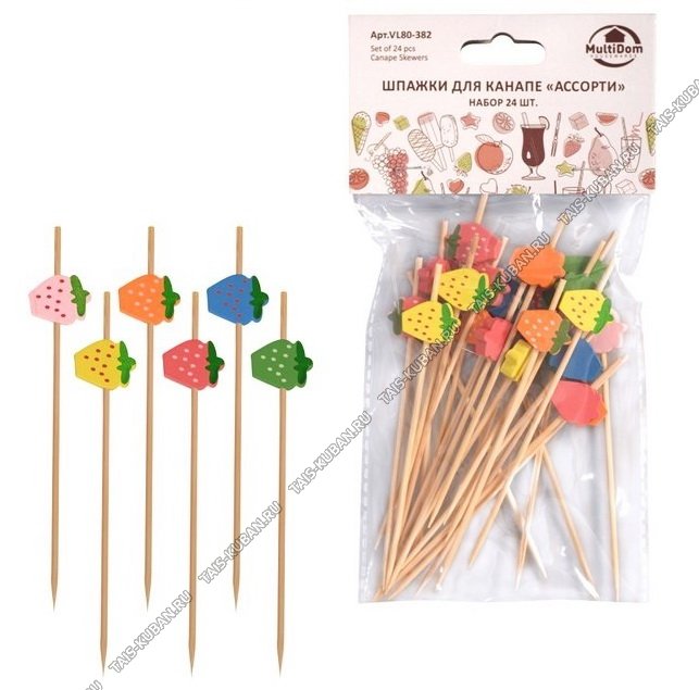 ПИКИ бамбук для канапе 24шт ПИКИ бамбук для канапе 24шт "Ассорти/Клубнички" (24)