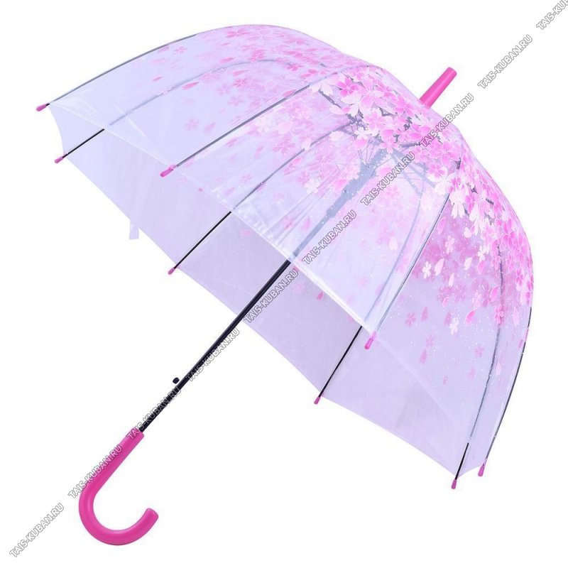Зонт "купол" полуавтомат d80см "Сакура" h82см,8спиц,полупрозрачн (6)