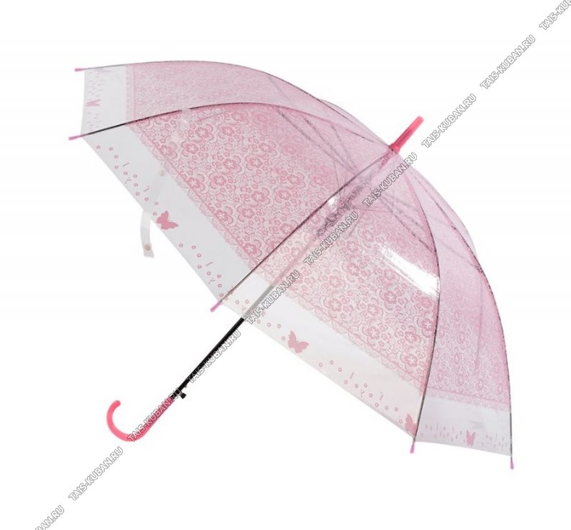 Зонт-трость полуавтомат,прозр d90см "Кружевные цветы/Розов" (20)