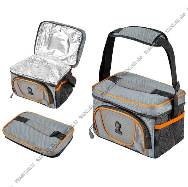 Цвет - серый/оранжевый. Материал полиэстер. Теплоизолирующий слой: алюминевая фольга+вспененный полиэтилен, толщина 4мм, плечевой ремень, наружный карман, 1 ручка